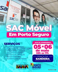 Não perca a oportunidade de resolver suas pendências e aproveitar serviços importantes, sem sair de Porto Seguro! Aproveite a comodidade que o SAC Móvel oferece! 🤝