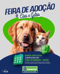 Serão cerca de 50 cães e gatos, adultos e filhotes, disponíveis para a adoção durante a feira, que acontecerá na Praça da Bandeira, a partir das 9h. Todos os animais estão castrados, vacinados e vermifugados.