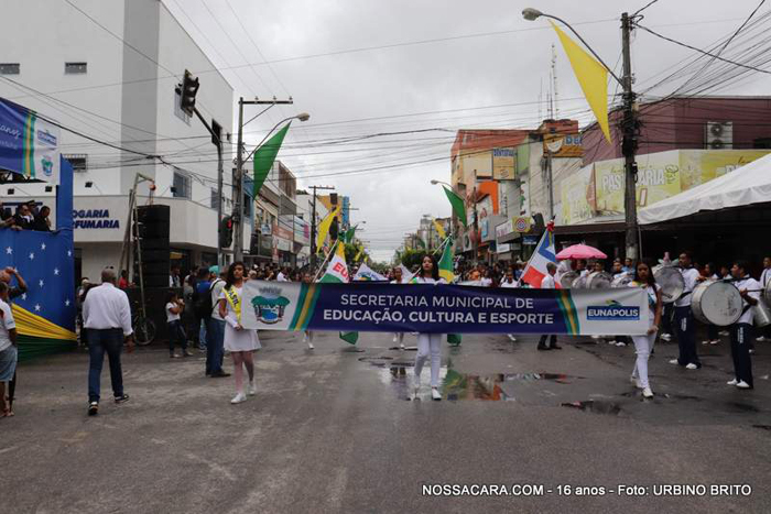 Em Eunápolis, em mais esta comemoração, escolas municipais, clubes de serviço, corpo de bombeiros, dentre outras entidades, foram às ruas, demonstrar às crianças um pouco de civilidade, patriotismo e, contar um pouco da história de um país, considerado um dos melhores do mundo, assolado apenas pela corrupção política, que está difícil de erradicar, mas mesmo assim, o 7 de setembro em todo país, acontece de forma ordeira e patriótica.