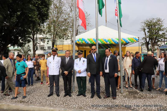 No desfile deste 7 de setembro, no palanque oficial, estiveram o prefeito Robério Oliveira, um dos 3 poderes da nação, o presidente da câmara Municipal, o vereador Jorge Maécio, outra autoridade constitucional, o CMT da 7ª CIPM o major Vagner Ribeiro, o Cap. Azevedo possivelmente o futuro comandante do grupamento do Corpo de Bombeiros da PM em Eunápolis, Dr. Moisés Damasceno coordenador da 23ª CORPIN, Eduardo representando a PRF, este ano, no palco montado este ano na Avenida Duque de Caxias, o prefeito Robério Oliveira, vereadores, representantes da Polícia Militar, Civil, Rodoviária Federal e Corpo de Bombeiros, secretários municipais, e demais autoridades apreciaram todo o evento.