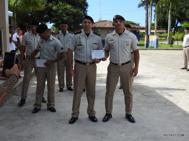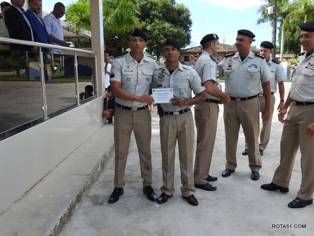 Como forma de reconhecimento pelo bom desempenho no transcorrer do curso, foram premiados os três primeiros colocados da turma. Destaque para o Soldado PM Ricardo Ribeiro de Freitas de Jesus, que obteve a maior média intelectual, entre todos os formandos. “Recebemos os alunos desta turma em nossa casa, a maior parte egressa do mundo civil. Trabalhamos diariamente com dedicação e afinco para forma-los profissionais da segurança pública, e hoje, com muita satisfação e senso de dever cumprido, nós os devolvemos à sociedade, prontos e em condições de bem-servir a população”, afirmou o Comandante da Unidade, o Tenente Coronel PM Alexandre Costa.