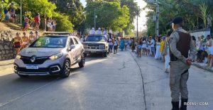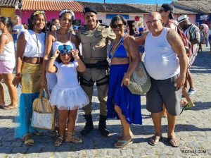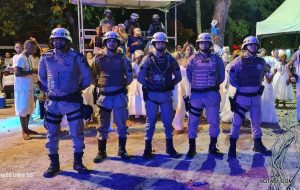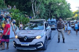 O policiamento garantiu a segurança dos participantes do evento, acompanhando-os ao longo de todo o trajeto, iniciado na Praça São Brás e finalizado nas areias da Praia dos Pescadores.