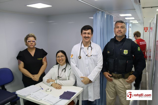 Com vários tipos de atendimento médico, desde exames até assistência psicológica a alguns pacientes, a carreta da PRF em acordo com o SEST/SENAT e uma faculdade de medicina e a prefeitura de Eunápolis, estacionou uma carreta na BR 101, espaço do Pedrão, e está dando total assistência médica aos pacientes.