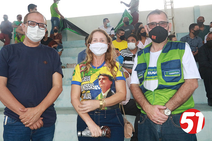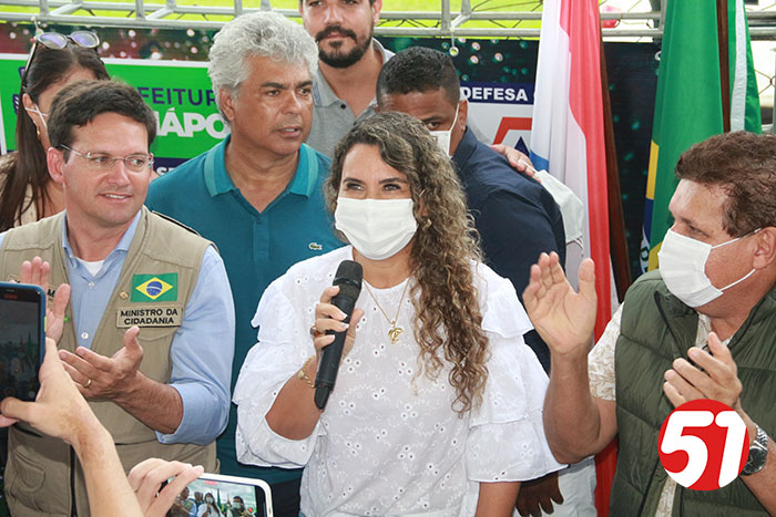 Estiveram presentes no palanque com o ministro, João Roma, além da prefeita Cordélia e seu esposo Paulo Dapé, a vereadora Carmem Lúcia, o vereador Artur Dapé, o Ten Cel Alexandre Lucas, e alguns deputados.