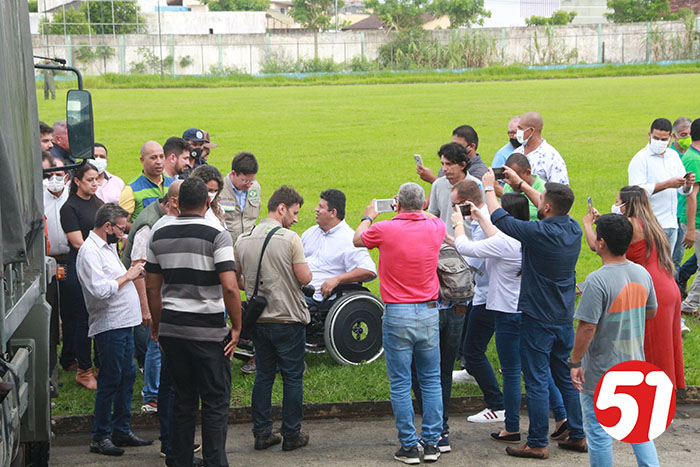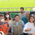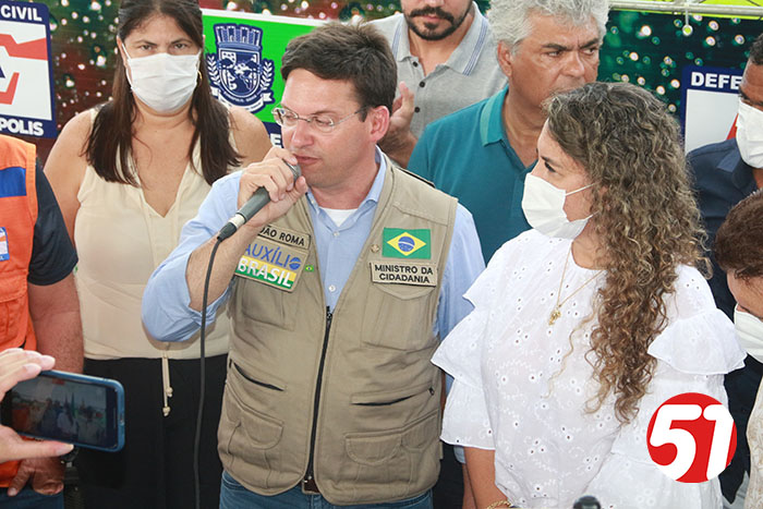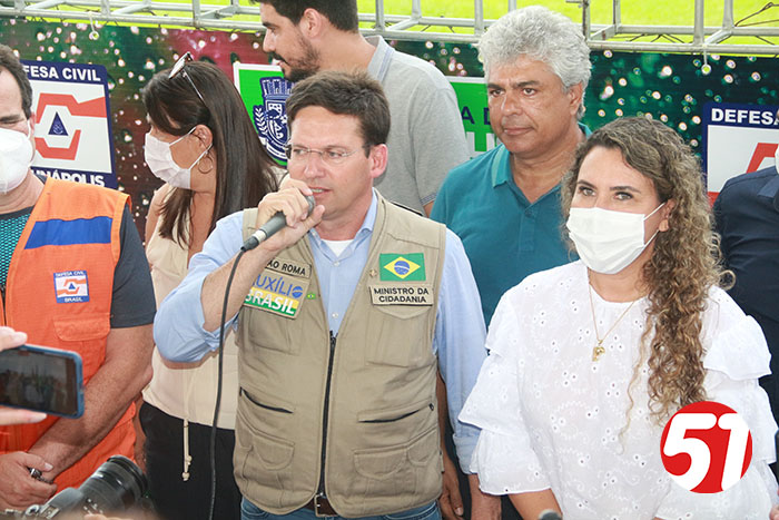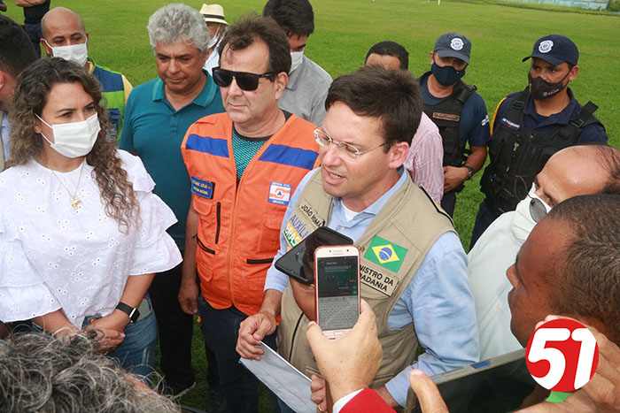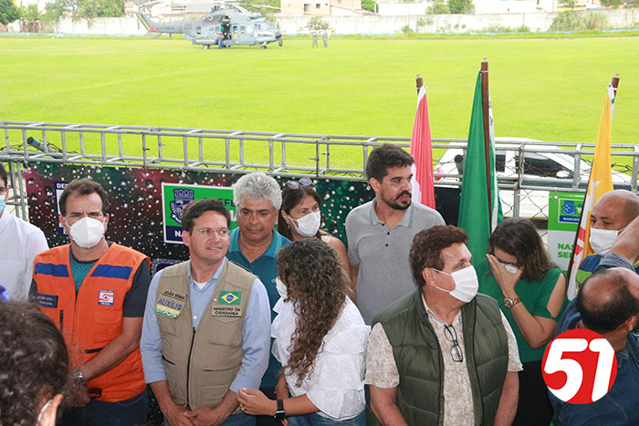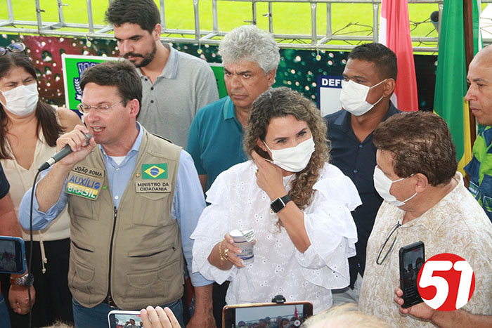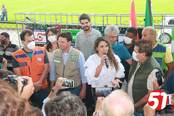 Já o ministro João Roma, em seu discurso, falou sobre tudo que viu, da reunião e das comunicações com o presidente Bolsonaro, e relatou todo sofrimento do povo das regiões atingidas no Sul e extremo sul da Bahia. João Roma, em nenhum momento usou de politicagem para dizer o que estava sendo feito, mas disse, que quando ele e seus assessores vão fazer entregas nestas regiões, por determinação do presidente Bolsonaro, que não “perguntasse a qual partido” a pessoa pertencia, mas sim, faziam, as entregas de acordo com a necessidade de cada um. Sempre muito ético e sem fazer a politicagem dos opositores, o ministro João Roma criticou o governador Rui Costa, pelo não atendimento aos carentes, mas mostrou que o presidente Bolsonaro, se preocupa com todos e, sobretudo com as carências de cada um, depois o ministro João Roma, ligou para o presidente que o atendeu imediatamente, e depois de ouvir o seu ministro, deu o seu recado ao povo eunapolitano, dando conta de sua ação solidária, em favor de todos aqueles que se viram desabrigados, famintos e desamparado, de acordo com as últimas chuvas, o que aliás, ajudou a atrasar um pouco o pouso do helicóptero no estádio do Araujão, em seguidas algumas famílias receberam das mãos do ministro e assessores, cestas básicas, que estavam no caminhão do 35º BI do exército brasileiro.