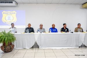 Participaram da mesa o diretor-presidente da PorTran, Adenildo Macário Prates; presidente da Câmara de Vereadores, Ariana Prates; secretário Municipal de Saúde, Miguel Balejo; comandante da Marinha, capitão Bruno Faria; coordenador-adjunto do Cicom, subtenente Anderson Silva; e inspetor da Polícia Rodoviária Federal, Rodrigo Araújo. Entre as autoridades presentes estavam Major Lima Neto, subcomandante do 8º BPM; subtenente Hipólito, comandante da PRE Base de Vale Verde; delegado-titular da Deltur, Wendel Ferreira; Major Erick, do Corpo de Bombeiros e secretário de Agricultura, Erioslvado Renovato.