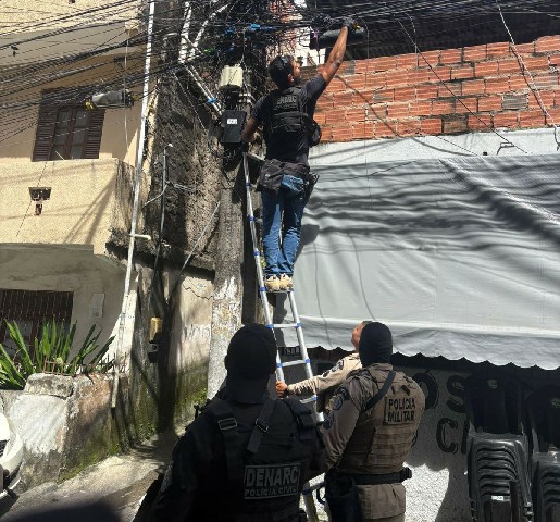 Uma rede de videomonitoramento usada por uma organização criminosa foi desarticulada no bairro de Cosme de Farias, nesta quarta-feira (29). Nove câmeras foram localizadas e desinstaladas, e um simulacro foi apreendido durante uma ação integrada realizada pelas polícias Civil e Militar da Bahia.