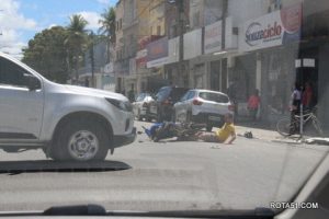 O rota51.com já fez algumas matérias, mostrando a sua preocupação com o trânsito na cidade, principalmente quando motos estão envolvidas; neste caso o motoqueiro, ajudado por alguns transeuntes, se levantou e se colocou de pé no passeio, enquanto outros retiravam a moto caída no asfalto e, a colocava à beira do passeio.