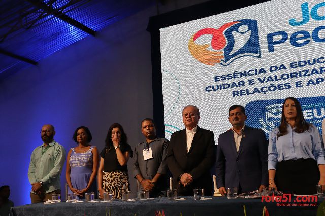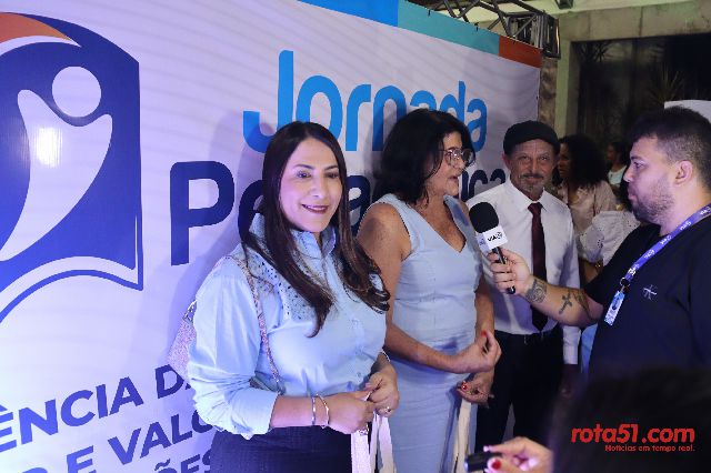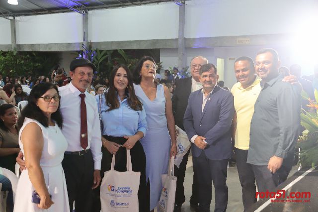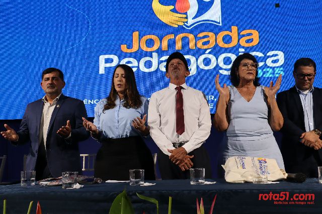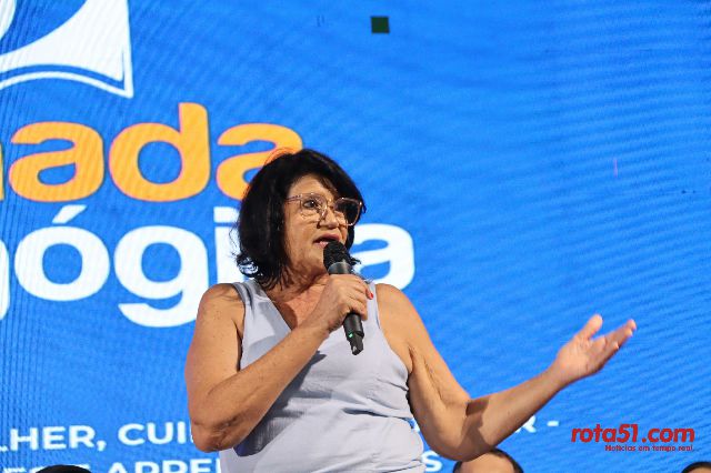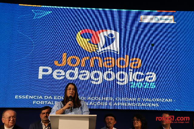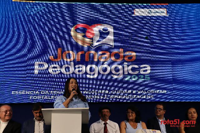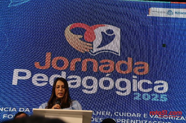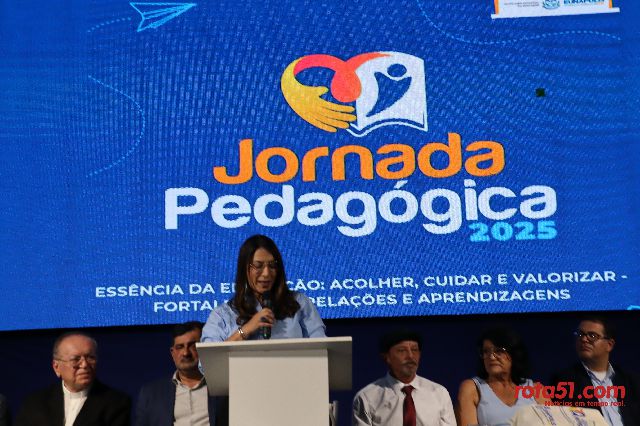 A secretária de educação Jovita Lima, iniciou os discursos, dando boas-vindas a todos os profissionais da educação, de professoras a merendeiras, destacando as perdas anteriores e a recuperação educacional no atual governo, onde destacou o tema da jornada 2025.