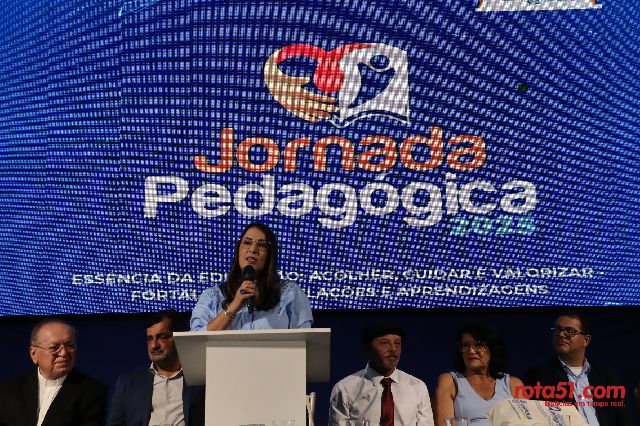 E depois foi a vez da Deputada Claudia Oliveira, que fez uma saudação nominal a todos os presentes, saudou a todos os professores e professoras, e disse algo muito importante, “as campanhas políticas, ficaram no passado e agora é hora de arregaçar as mangas e trabalhar, pelo bem da educação e da cidade.”