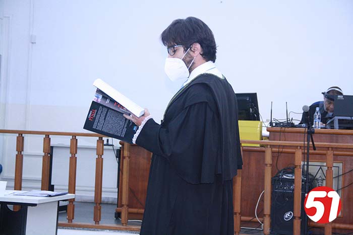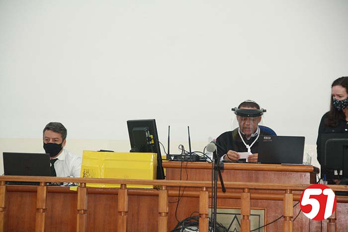 Presentes o MM. Juiz Dr. Otaviano Sobrinho, representante do Ministério Público o promotor Dr. Rodrigo e o representante da defensoria pública Dr. Victor Rêgo e sua estagiaria Júlia Lima Negreiros, depois de sorteados e escolhidos os 7 jurados, formalizaram o juramento de um julgamento independente, estes receberam do juiz, o relato sintetizado do crime, já que estes processos são muito extensos e por isto, é feita uma síntese de tudo, para depois, tanto o ministério público como o defensor público, possam usar de seus argumentos, para então, os juízes leigos, ou seja os jurados, possam tomar uma decisão, equilibrado do ato em julgamento, neste júri, atuaram 2 homens e 5 mulheres, porém os jurados convocados e que não compareceram, foram multados em 2 salários mínimos para um, pagamento em até 10 dias.