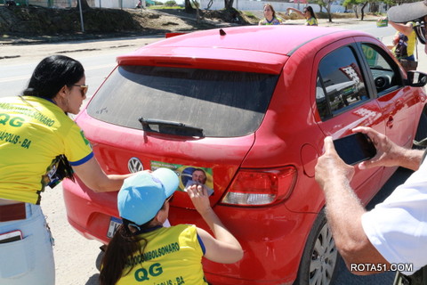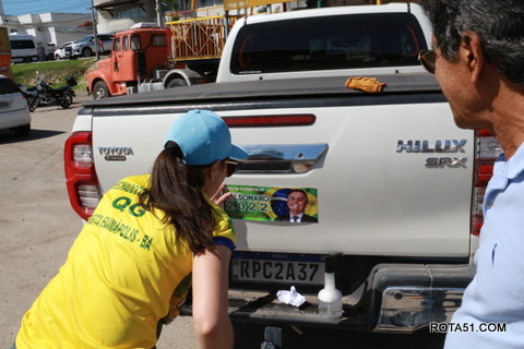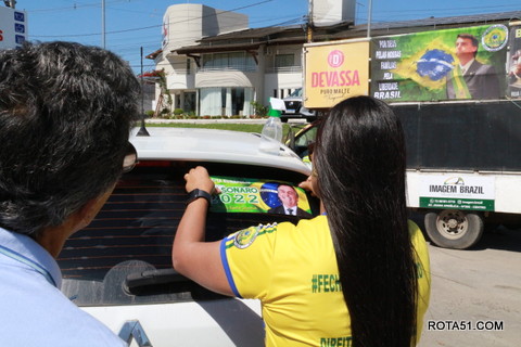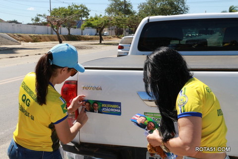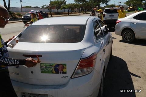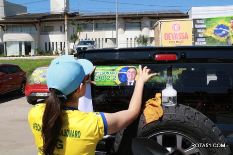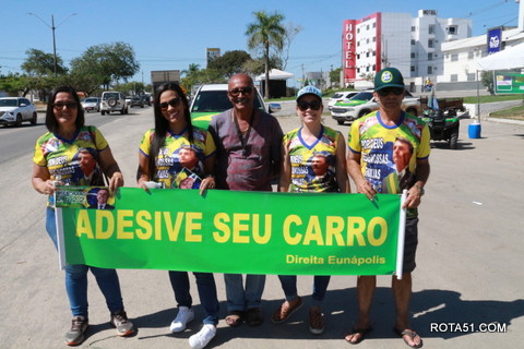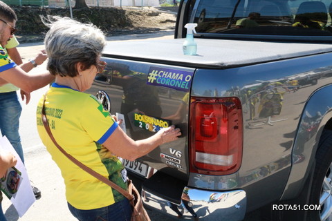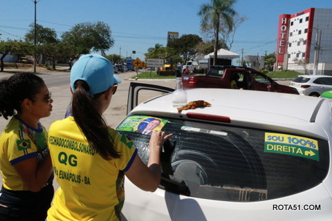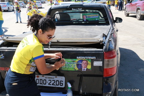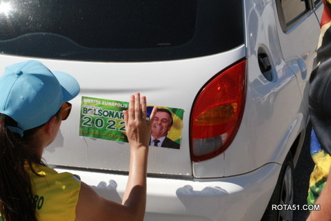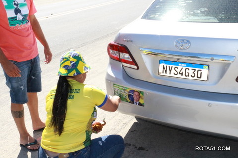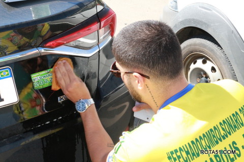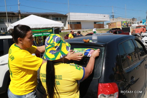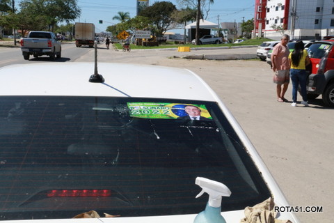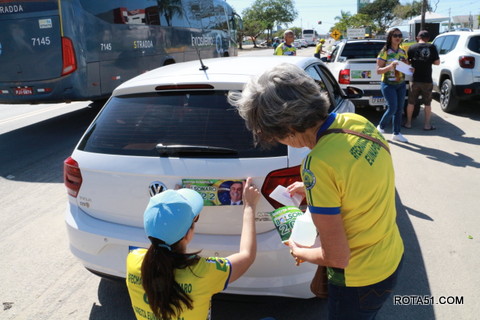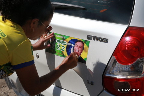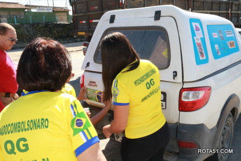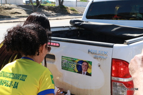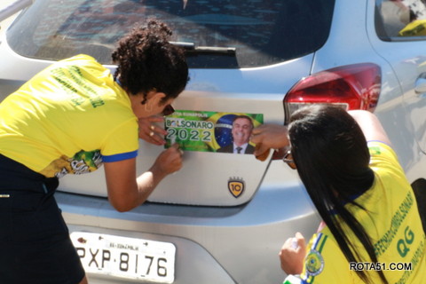 Geralmente os patriotas da direita, que apoiam e está empenhada na reeleição do Presidente Bolsonaro, que defende pautas importantes, DEUS, PÁTRIA, FAMÍLIA E LIBERDADE, fazem os adesivaços na praça da bandeira no centro da cidade, mas hoje em um novo desafio, estiveram na BR 367, no espaço do Pedrão, e lá realizaram o 3º adesivaço Pró Bolsonaro, João Roma e Dra Raissa. O resultado muito satisfatório, pois mais de 600 adesivos foram aplicados, entre carros, caminhões e motos.