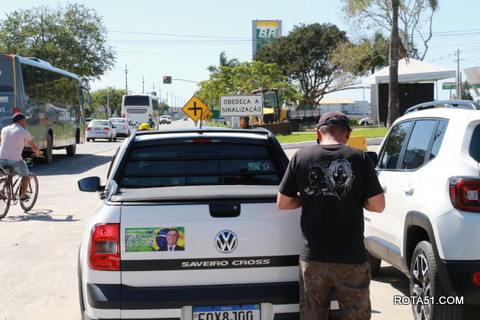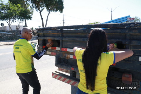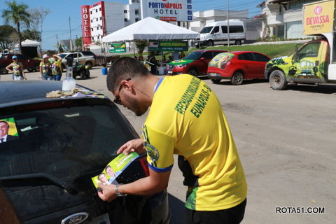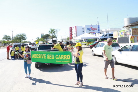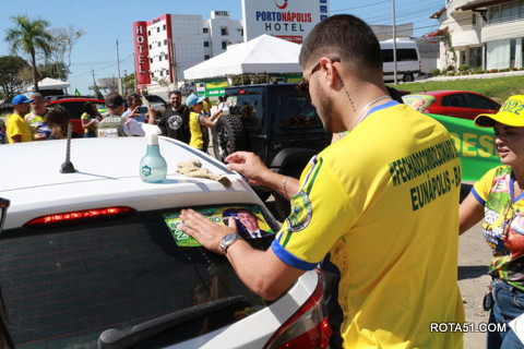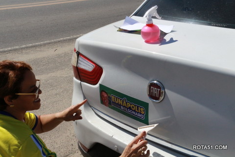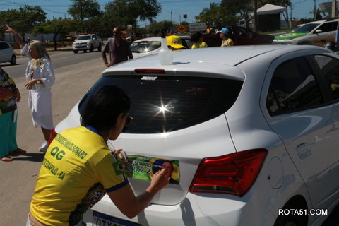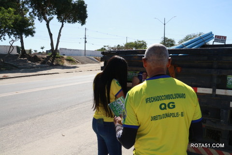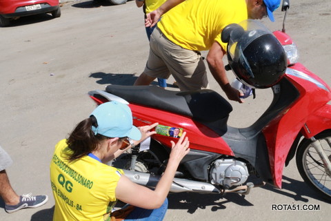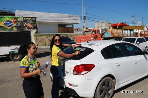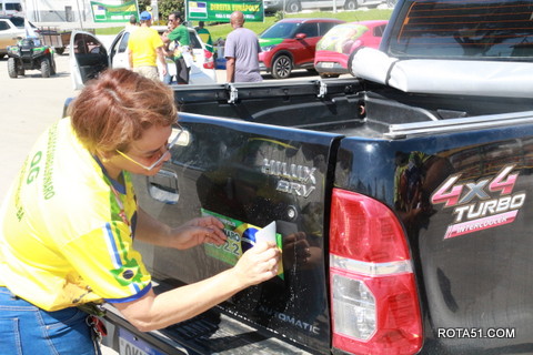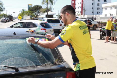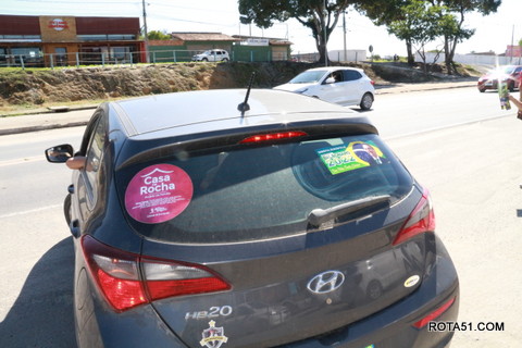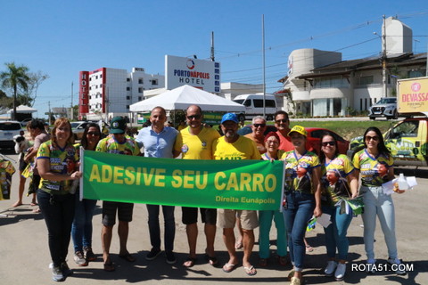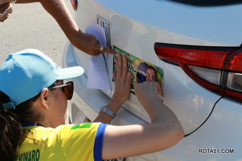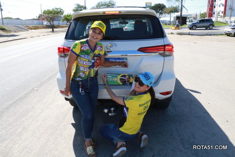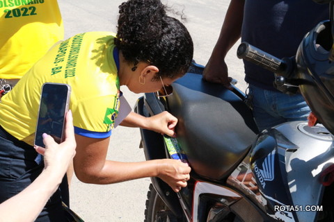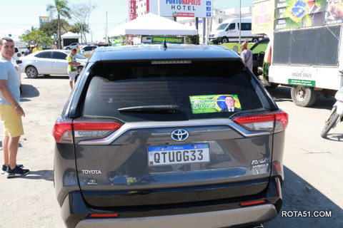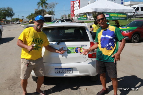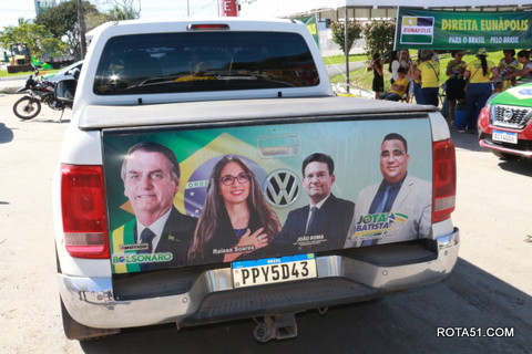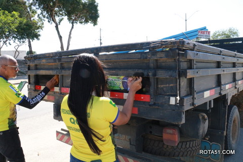 Geralmente os patriotas da direita, que apoiam e está empenhada na reeleição do Presidente Bolsonaro, que defende pautas importantes, DEUS, PÁTRIA, FAMÍLIA E LIBERDADE, fazem os adesivaços na praça da bandeira no centro da cidade, mas hoje em um novo desafio, estiveram na BR 367, no espaço do Pedrão, e lá realizaram o 3º adesivaço Pró Bolsonaro, João Roma e Dra Raissa. O resultado muito satisfatório, pois mais de 600 adesivos foram aplicados, entre carros, caminhões e motos.