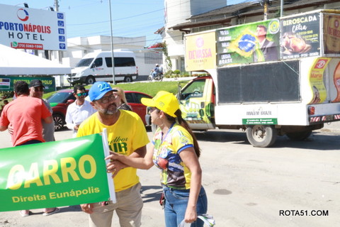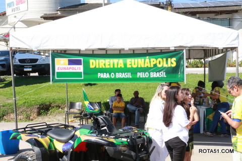 A organização ficou por conta das MULHERES DA DIREITA EUNAPOLIS, (lideradas por sua coordenadora Valéria Frieber), um braço forte do grupo DIREITA EUNAPOLIS, apoiadas pelo grupo Casa da Direita Eunápolis, através de Giru da Farmácia, Dr Fabrício Frieber e Marconi Macedo. Ainda antes de iniciar o evento, tivemos a oração ministrada pelo Pastor Antônio Marquês da Igreja Batista Getsêmani, que deixou uma linda mensagem de incentivo. Passaram pelo local os pré-candidatos a deputado estadual o Coronel França que estava em deslocamento pra Porto Seguro onde participaria de reuniões de campanha e Dr Jota Batista, ex vereador de Eunápolis e político atuante.