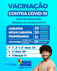 Confira a nova programação semanal de vacinação a partir do dia 29/08/2022, das 10h às 14h nos locais abaixo 👇🏻
