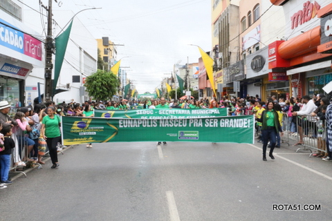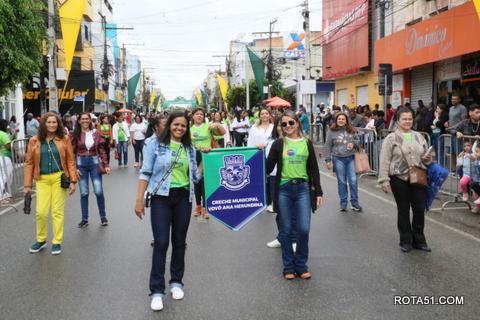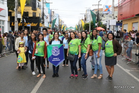 Entidades como PRF, PM, CORPO DE BMJBEIROS, PC, SAMU, AMBULANCIAS, E A GUARDA MUNICIPAL, CEMEI, Escolas Municipais de Ensino Fundamental , Secretaria Municipal de Esporte, cultura e Lazer, Instituições e ONG”s, Desbravadores, ADRA,  que é um programa oficial da Igreja Adventista do 7º dia, Artistas da cidade, Filhas de Jó, Ordem Demolay, Ciclistas, Motociclistas, Carros antigos, Belas e Brutas, e berranteiros, todo isto, veio formar um elo da corrente cívica, para o desfile deste ano.