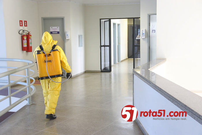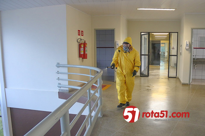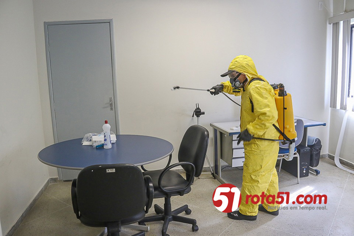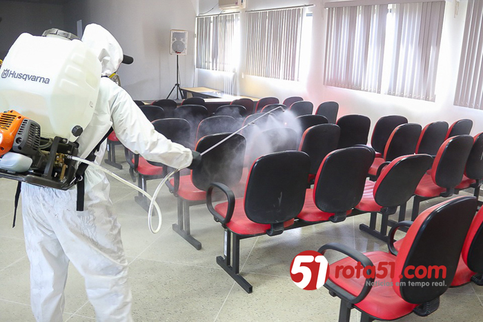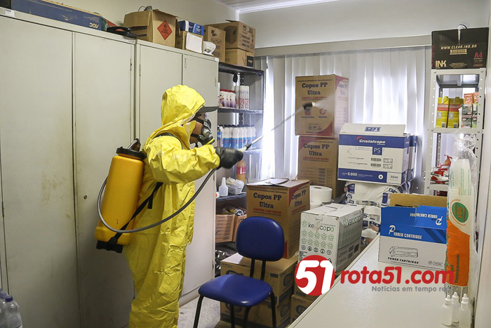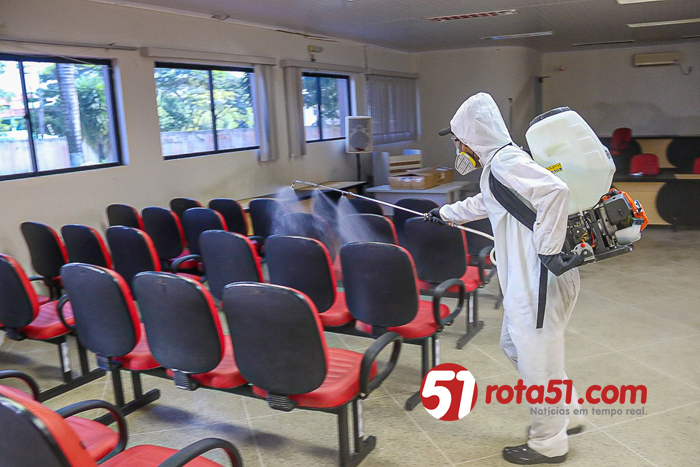 O serviço de desinfecção química foi feito na manhã e tarde desta sexta, 05.