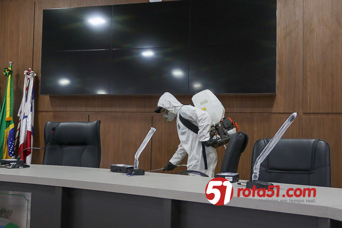 O expediente interno da Câmara de Vereadores de Eunápolis foi suspenso nesta sexta-feira (05/06) para que fosse feita a desinfecção química do prédio. A medida foi tomada após três servidores terem apresentado sintomas do Novo Coronavírus. Os servidores foram afastados do trabalho e estão em isolamento familiar, sendo monitorados pela Secretaria de Saúde do Município.