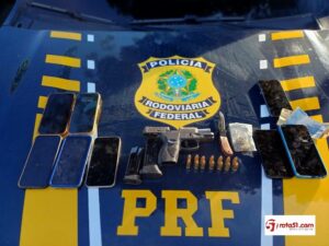 Durante operação de fiscalização na ponte sobre o Rio Jequitinhonha, no município de Itapebi (BA), a Polícia Rodoviária Federal (PRF) prendeu cinco indivíduos, apreendeu uma arma de fogo de uso restrito, munições e recuperou oito aparelhos celulares, possivelmente oriundos de roubos/furtos. A ação integra os esforços da PRF para garantir a segurança viária e o cumprimento das restrições de tráfego de veículos de carga na região.