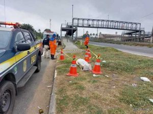 A Polícia Rodoviária Federal (PRF) realizou, neste sábado (30), ação educativa em trecho da BR 324 (Km 520), na área industrial de Feira de Santana. Uma simulação de acidente foi feita no local para chamar a atenção de motoristas e pedestres.