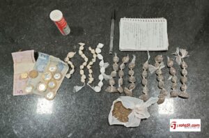 - 8 trouxinhas de substância análoga a cocaína (8g);