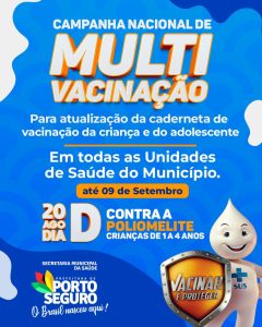 A Prefeitura de Porto Seguro tem um recado importante pra você:: neste sábado, dia 20, as unidades de saúde esperam pelas crianças e adolescentes menores de 15 anos, para atualização da carteira de vacinação, das 8h às 14h.