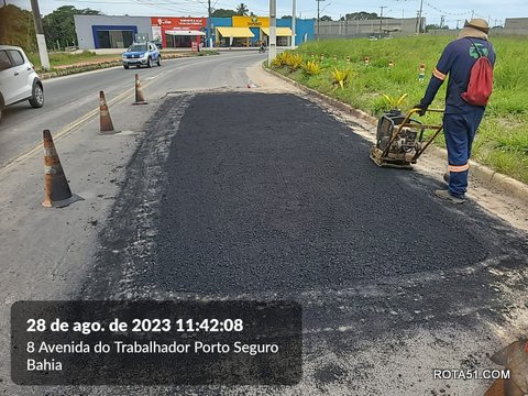 As equipes de manutenção da Prefeitura de Porto Seguro, através da Secretaria Municipal de Infraestrutura e Obras, estão realizando a operação tapa-buracos na Avenida do Trabalhador, uma das principais vias da cidade. A ação visa melhorar as condições de tráfego e proporcionar mais segurança aos motoristas que transitam diariamente pela região.