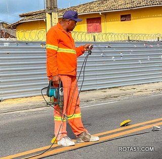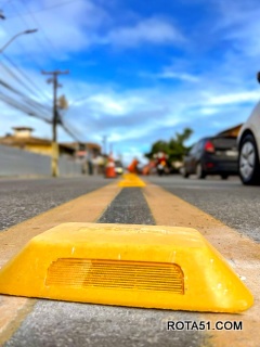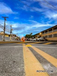 Os serviços contemplam pintura da faixa dupla central amarela, faixas laterais brancas e instalação de tachões reflexivos bilaterais com espaçamento de 200 centímetros entre um e outro. Todas as melhorias seguem rigorosamente as orientações do Manual Brasileiro de Sinalização de Trânsito e irão promover mais segurança e ordenamento do trânsito nesta que é uma das mais importantes avenidas da cidade.