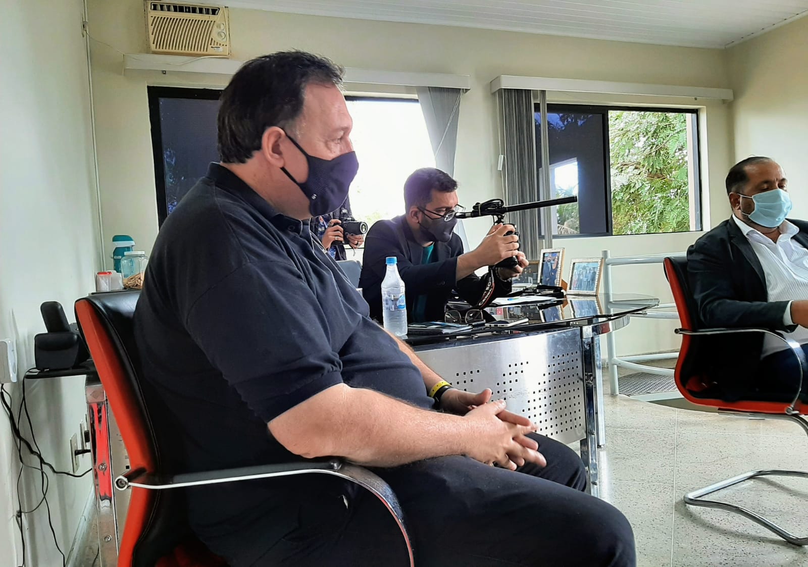 Ele foi recebido na sala da presidência pelos vereadores Carmem Lúcia, Pedro Queiroz, Adriano Cardoso, Renato Bromochenkel, Ueliton de Moraes, Marcos Oliveira, Tiago Souza e Adeilson Costa, além de assessores.