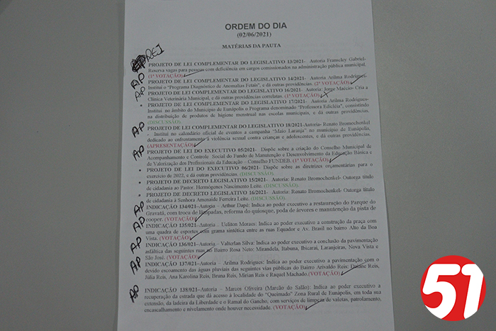 Vejam nesta matéria a Ordem do Dia com todas as indicações devidamente aprovadas, exceto a do vereador Francis que tentou de todas as formas, aprovar a sua indicação, que a princípio, a vereadora Carmem pediu vistas, foi concedido o pedido, mas que nesta sessão de 02/06, a vereadora antevendo a inconsistência da indicação, preferiu se “ABSTER” em votar e deu explicações: “é que se a indicação passasse, os deficientes, que por ventura viessem ser contratados pelo serviço público, perderiam os benefícios anteriormente adquiridos e, ao invés de terem dois vencimentos perderiam um e só ficariam com um vencimento, mesmo dizendo que sua indicação não era inconstitucional, ela foi derrotada por 9 votos.