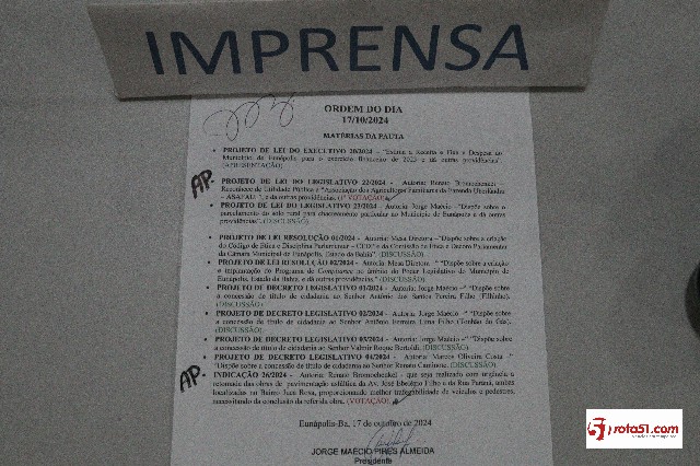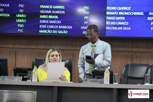 O diretor legislativo Milton Guerreiro leu a ata da sessão anterior que foi aprovada e depois a vereadora reeleita Carmem Lúcia, leu a ordem do dia e em seguida a presidente Arilma, fez o intervalo de 5 minutos,