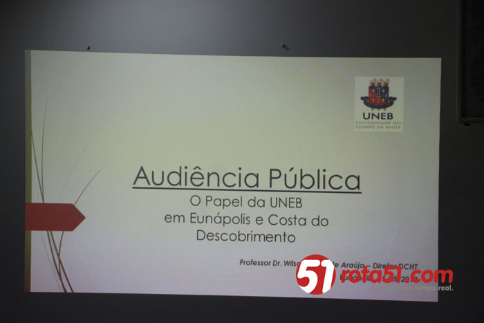 Aconteceu na manhã desta 3ª feira 15/05, uma audiência pública, onde a reclamação é ampla, sobre a construção do campus XVII da UNEB em Eunápolis. Para tanto esta audiência pública tem como princípio, a formatação de uma carta de intenções, que deverá ser entregue ao governador Rui Costa, pelo presidente da Câmara Municipal de Eunápolis o vereador Jorge Maécio, que também a sessão desta audiência que teve as participações de alunos e professores, dos vereadores Jorge Maécio, Arthur Dapé, Luizinho, Daniel Mendes e o presidente da comissão permanente da educação, o vereador Jurandir leite.