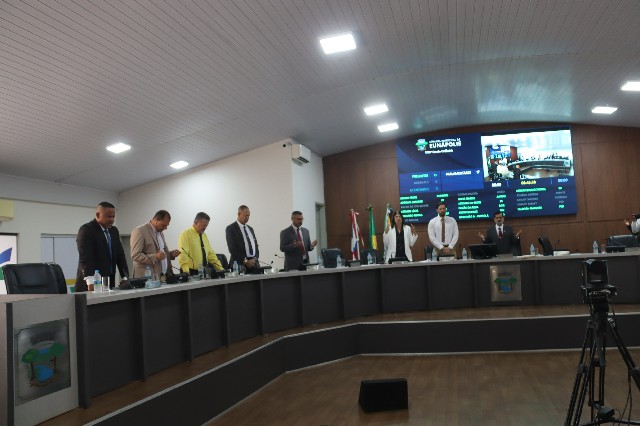 O ritual é o mesmo, com o presidente d câmara Valdiran Marques, conferindo o quórum e depois fazendo a oração do dia, o PAI NOSSO.