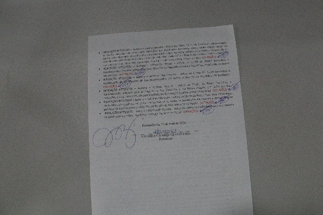 A pauta do dia desta sessão contou com 4 projetos de lei do legislativo, 2 do executivo, 7 indicações e 1 requerimento. O projeto de lei do legislativo 21/26 e a indicação 09/26, não puderam ser votadas pela ausência do vereador, sendo sua ausência por este justificada.