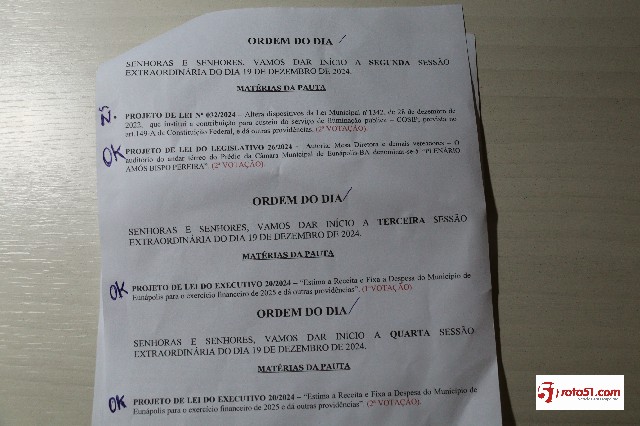 Para tanto, a Ordem do Dia e todas as votações estão registradas nesta matéria, sendo em sua maioria todas aprovadas, algumas rejeitadas, outras com abstenções, mas na realidade, cumpriu-se a atenda do final deste ano de 2024.