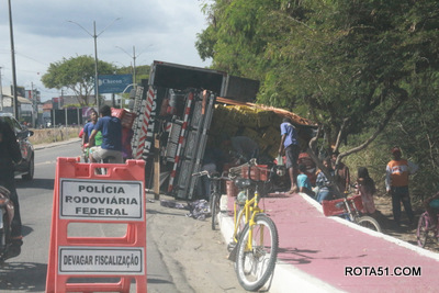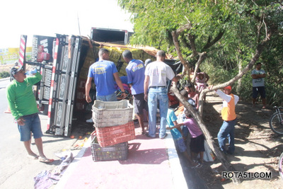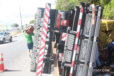 Quando a reportagem do rota51.com chegou ao local haviam muitas pessoas por perto e como sempre acontece, possivelmente para aproveitar o acidente e tentar levar algumas caixas, mas quando a reportagem começou a fotografar, poucas pessoas ficaram no local.