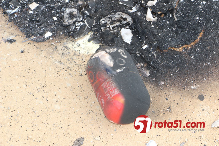 A reportagem do rota51.com, fez vários registros fotográficos, dando conta de que, havia um extintor de incêndio, do lado de fora, também incendiado.