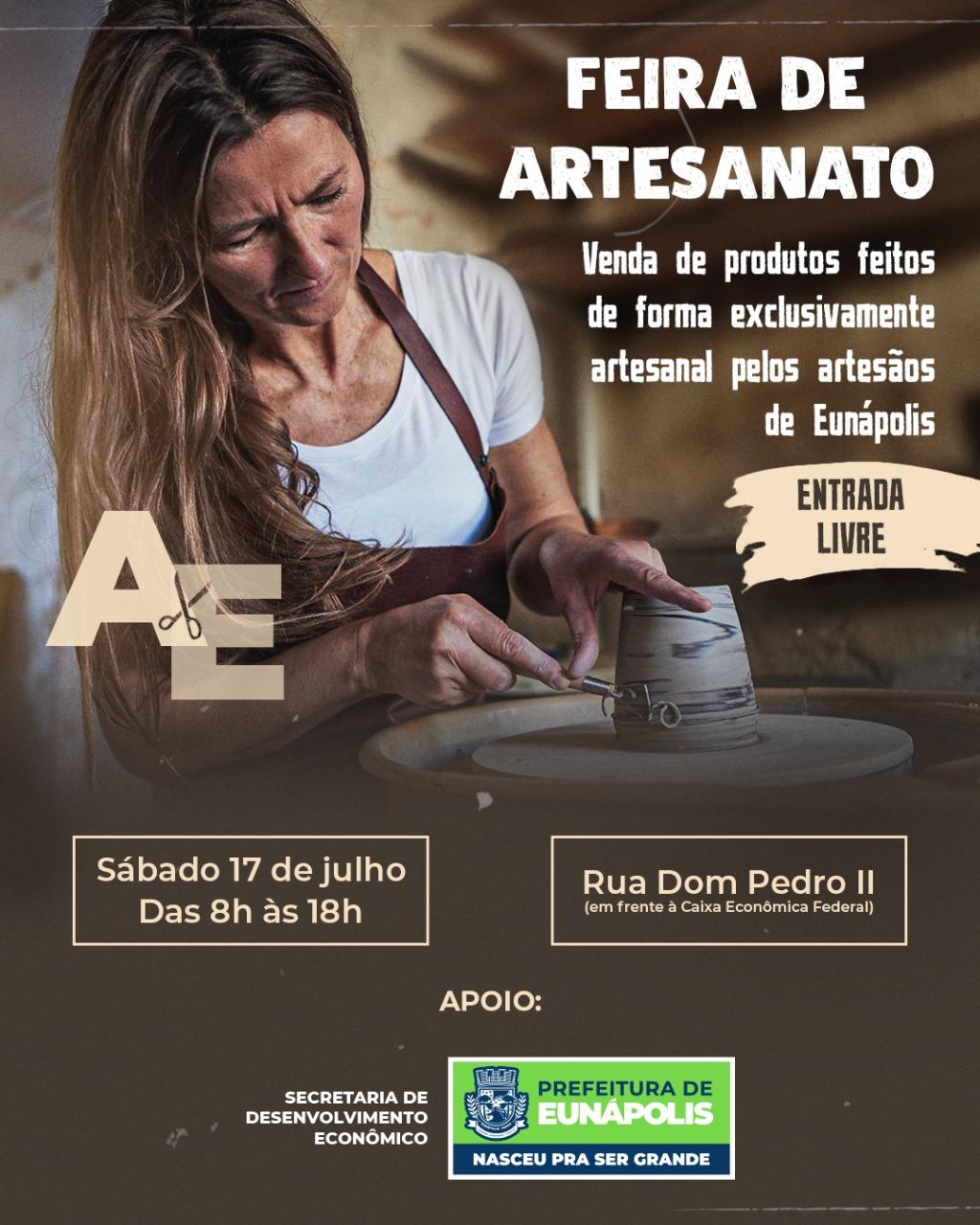 A realização do evento é dos artesãos locais, com apoio da Prefeitura de Eunápolis, por intermédio da Secretaria Municipal de Desenvolvimento Econômico. A feira, que vai contar com a participação de mais de 30 artesãos, disponibilizará diversos tipos de peças artesanais, todas confeccionadas em Eunápolis. O evento também terá serviços de alimentação, que incluirá comidas típicas da culinária regional e outras guloseimas.
