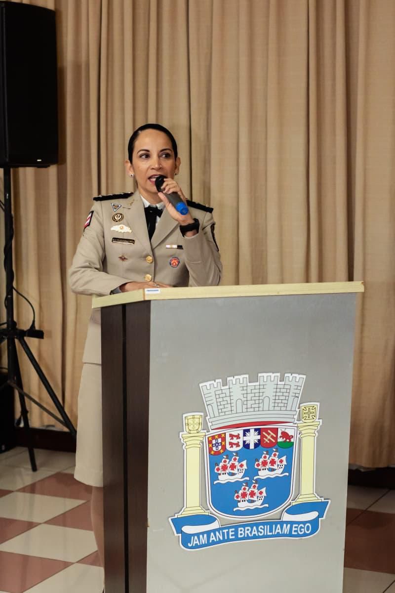 A homenagem é um reconhecimento aos serviços prestados pela Capitã, que é uma referência na defesa e proteção dos direitos das mulheres, e simboliza o compromisso da PMBA em avançar na construção de uma sociedade mais segura e igualitária.