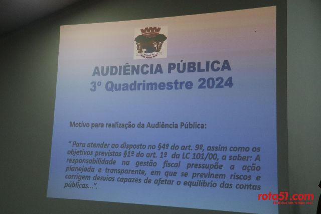 As contas foram apresentadas em um telão, sendo que as contas do legislativo, foram apresentadas pela Sra. Ivany Moreira Santana e as contas do legislativo foram apresentadas pelo Sr Jairo Azevedo, que fez uma apresentação minuciosa do que foi recebido e do que foi gasto em todos os setores administrativos, desde o pessoal até o setor de saúde.