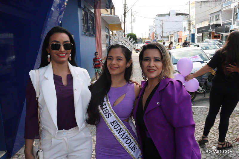 Nesta oportunidade, representando a mulher eunapolitana, a futura rainha de Eunápolis esteve presente, que além de fazer a campanha de sua eleição, ainda ajuda a OAB, nesta caminhada da violência contra a mulher.