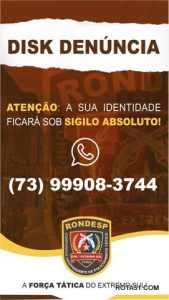 Vejam, anotem e guardem o novo numero do disk denúncia da RONDESP