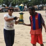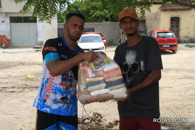 O juiz deste jogo foi Alexandro e os auxiliares Ederinaldo e Everton, que não tiveram muito trabalho, mas como se sabe, a paixão pelos clubes, sempre deixam uma marca de reclamação, a saber que os juízes agora são chamados de “professor”, mas, os professores de verdade, estão quase sempre longe dos gramados. Na foto ao lado, um jogador do Oriente, entregando uma cesta básica, como faz em todos os jogos nos quais participa.