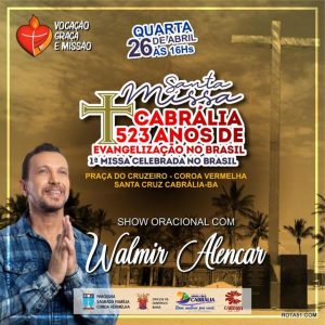 A Diocese de Eunápolis, a Paróquia Sagrada Família de Coroa Vermelha e a Prefeitura de Santa Cruz Cabrália promoverão no dia 26 de abril, quarta-feira, a partir das 16h, a recordação da 1ª Missa realizada no Brasil, em comemoração aos 523 anos de evangelização.