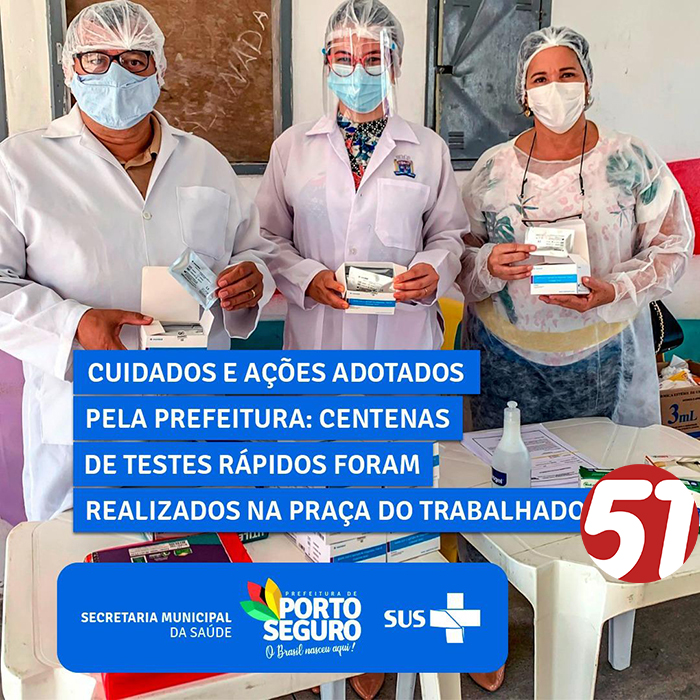 A Prefeitura de Porto Seguro, por meio da Secretaria Municipal da Saúde, realizou a testagem rápida para detecção do novo Coronavírus.