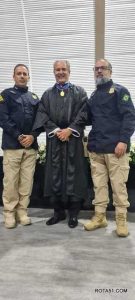 O Chefe do Serviço de Operações da PRF/BA e Superintendente Substituto, Althemar Brandão e o Superintendente Executivo, Gustavo Costa, estiveram presentes na cerimônia de posse do novo membro titular do TRE-BA, o desembargador Abelardo Paulo da Matta Neto. A solenidade ocorreu nesta quinta-feira (27) na capital baiana.