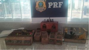 PRF resgata 14 aves silvestres dentro de ônibus na BR 116