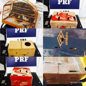 Dentro de mesmo ônibus, PRF flagra 6 passageiros transportando pássaros aprisionados em condições precárias