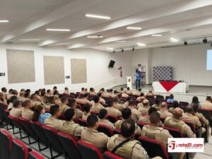 O Departamento de Promoção Social (DPS) da Polícia Militar da Bahia promoveu, na manhã desta terça-feira (22), uma parada geral no auditório do Colégio da Polícia Militar Anísio Teixeira, no bairro Monte Castelo, em Teixeira de Freitas. O encontro reuniu policiais militares do Comando de Policiamento da Região do Extremo Sul (CPR-ES), que é comandado pelo coronel Paraíso, com o objetivo de reforçar os cuidados com a saúde mental e a qualidade de vida dos agentes de segurança pública.
