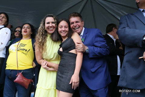 Depois de terminado o desfile, ainda no palanque central, na av Porto Seguro, a prefeita e secretários receberam os parabéns e muitas felicitações pelo desfile apresentado, fotos com crianças e professores, pois de acordo com as notícias, poderia nem acontecer o referido desfile.